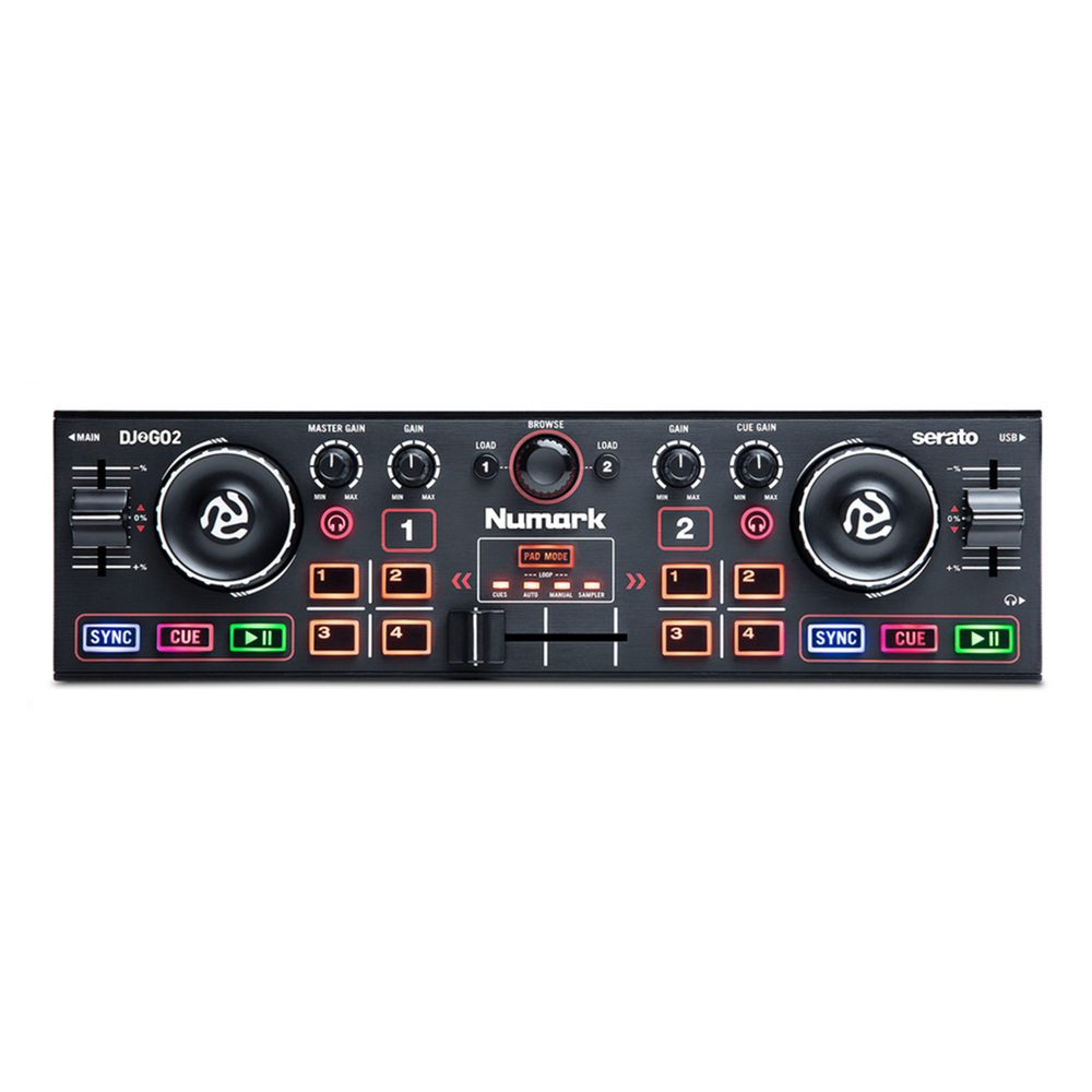 NUMARK DJ2GO2 - представляет собой 2-канальный портативный DJ контроллер второго поколения со встроенным аудиоинтерфейсом. Благодаря встроенному интерфейсу, контроллер позволяет подключить к нему наушники для персонального мониторинга, а так же вывести аналоговый аудиосигнал высокого разрешения непосредственно на микшерную консоль или акустическую систему. Невзирая на свои скромные габариты, он обладает всеми необходимыми функциональными возможностями и интуитивно понятными органами управления.