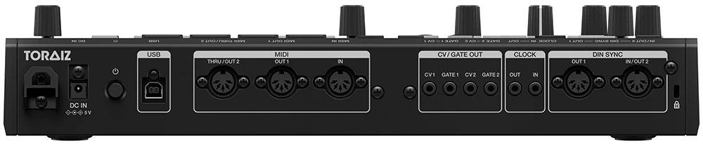 Входы/выходы: MIDI In/Out 1б MIDI Thru/Out 2; CV/Gate: CV Out 1 (V/Oct, Hz/V), CV Out 2 (V/Oct, Hz/V), Gate Out 1 (V-Trigger, S-Trigger), Gate Out 2 (V-Trigger, S-Trigger); Clock: Clock In (Step, 1, 2, 4, 24, 48 ppqn, Gate), Clock Out (Step, 1, 2, 4, 24, 48 ppqn); DIN Sync: DIN Sync In / Out 2 (24, 48 ppqn); DIN Sync Out 1 (24, 48 ppqn); USB: Type-B;