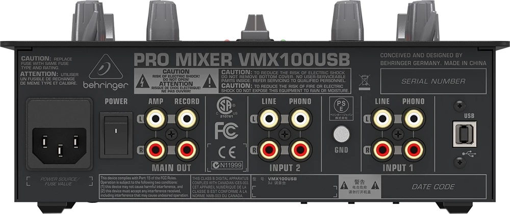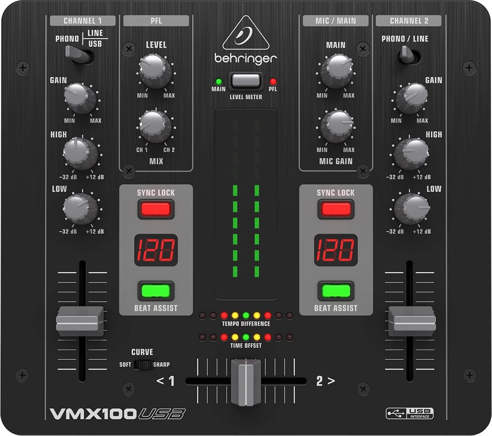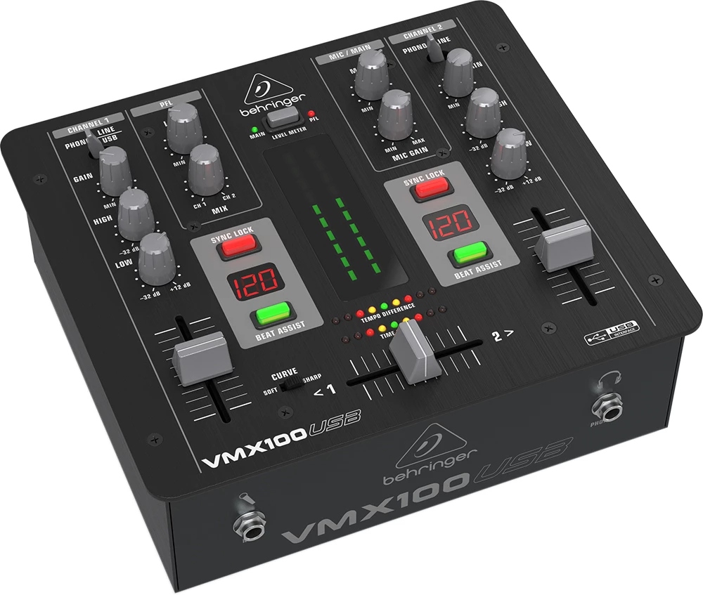VMX100USB - компактный двухканальный микшерный пульт для диджеев от компании Behringer.