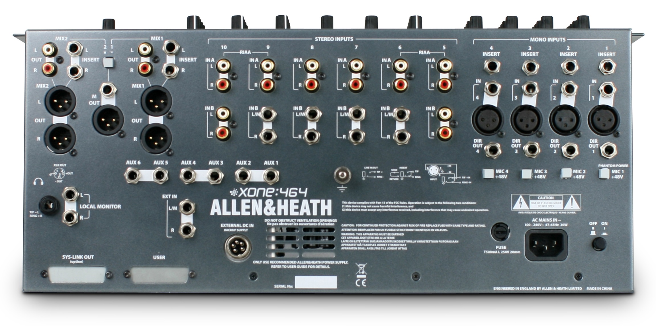 Allen & Heath Xone:464 – профессиональный клубный микшер на 4 моно входа, 6 стерео входов и 2 отдельных выхода.