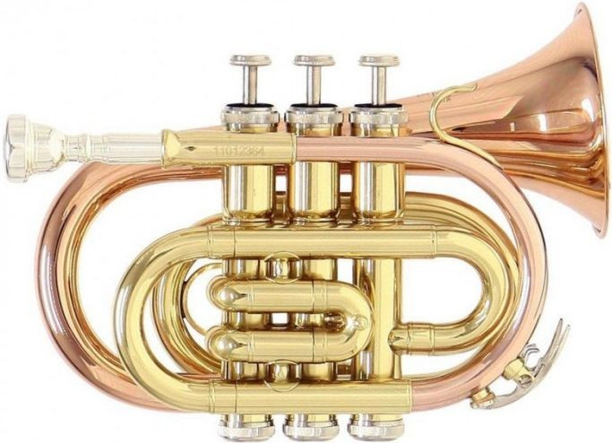 ROY BENSON PT-101G Bb карманная труба, покрытая золотым лаком, предназначена для начального уровня обучения. К отличительным свойствам этой трубы можно отнести её маленький размер и вес, а также легкое звукоизвлечение. Наружные трубки крона общего строя выполнены из желтой меди. Кольца для большого пальца расположены на кроне 3-го клапана. Труба имеет 2 клапана для слива конденсата. Пружины располагаются сверху.
