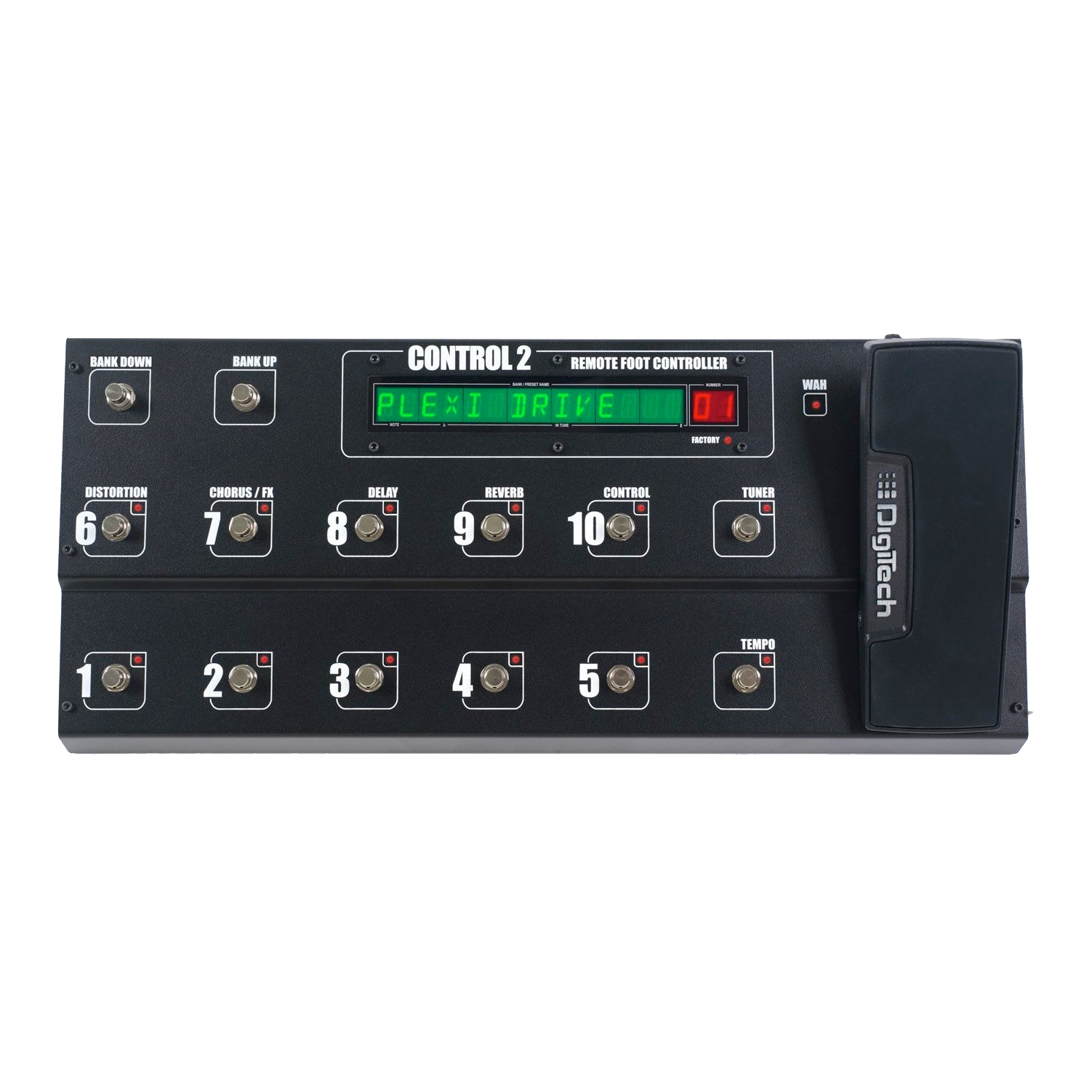 Control 2 также имеет встроенную педаль expression pedal, назначаемую на wah, громкость, DigiTech Whammy™ и другие параметры. 1/4” вход второй expression pedal расположен на