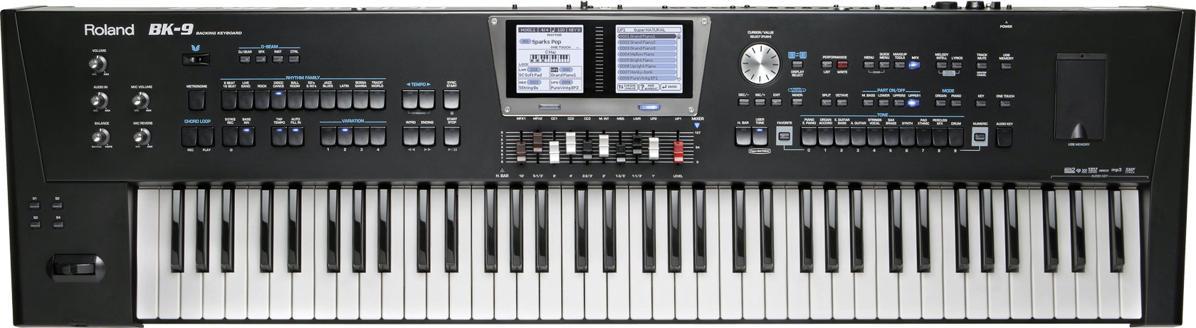The BK-9 - это мощный инструмент для сольных выступлений, а также для серьезных любителей, которым важен полный функционал. Тембры профессионального качества и мощная система аккомпанемента и записи USB, легкий вес и широкий диапазон - вот основные возможности BK-9.