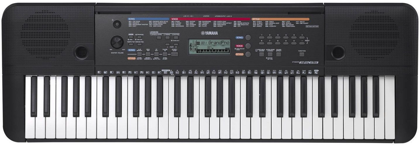 Синтезаторы фирмы Yamaha пользуются огромной популярностью во всем мире. Все дело в отличном соотношении цены и качества. А модель PSR-E263, предназначенная для начинающих музыкантов, тому достойное подтверждение. Этот синтезатор, имеющий 61 клавишу, идеально подходит для творчества благодаря библиотеке из 400 тембров различных музыкальных инструментов. Высокое качество звуков позволяет играть в самых разных жанрах, и эта возможность дополняется 130 стилями аккомпанемента. Гармонию задает сам исполнитель, зажимая аккорды в реальном времени.