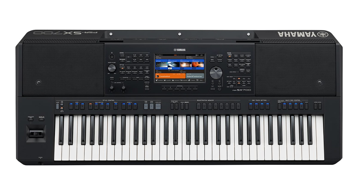 Yamaha PSR-SX700 — рабочая станция с 61 клавишей, 1027 звуками, 400 стилями, 7-дюймовым сенсорным дисплеем, 6 назначаемыми кнопками, встроенной акустической системой и входом для микрофона или гитары.