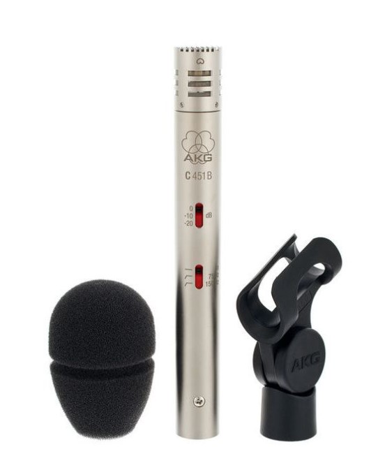 AKG C451B - конденсаторный инструментальный микрофон с кардиоидной диаграммой направленности и малой диафрагмой, идентичной по звуковым характеристикам легендарному микрофону C451 EB с капсюлем CK1.