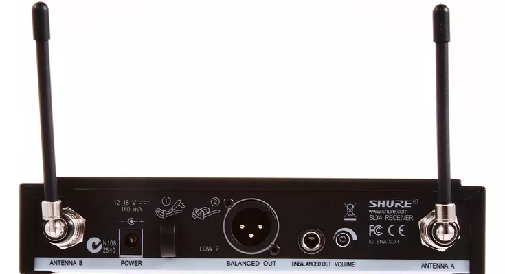 SHURE SLX4 − двухантенный радиоприёмник. Предназначен для приема аудиосигнала с ручного или поясного радиопередатчика.