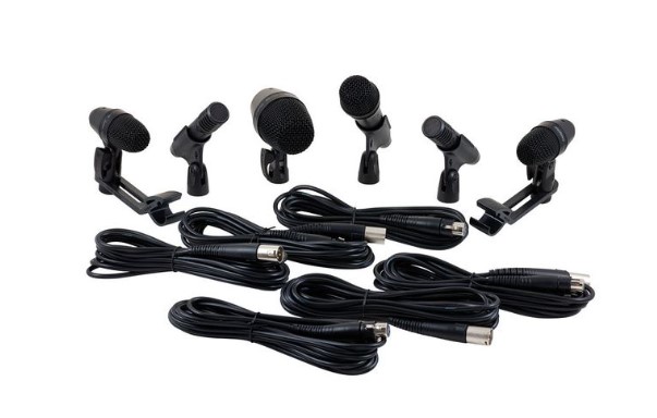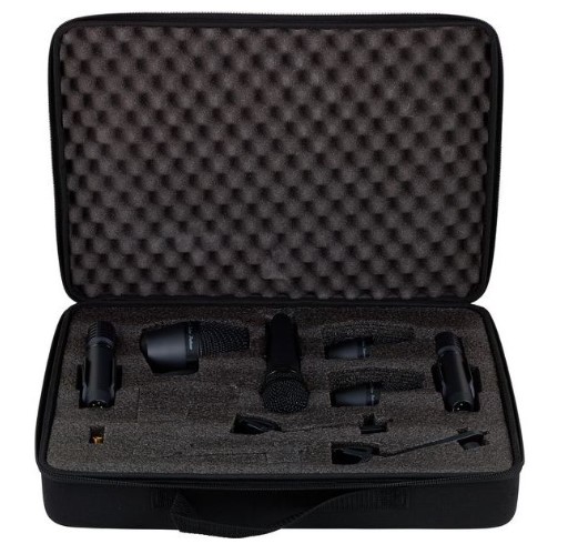 Shure PGADRUMKIT6 - набор высококачественных микрофонов для подзвучки ударной установки. В состав набора входит микрофон для бас бочки PGA52, два микрофона PGA56, один PGA57, два PGA81, два держателя для установки микрофонов на обод барабана, шесть кабелей XLR/XLR.