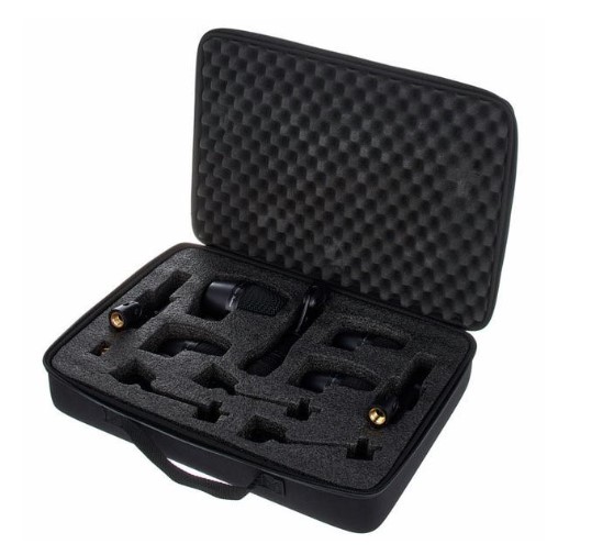 Комплектация: микрофон для бас бочки PGA52, 3 микрофона PGA56, один PGA57, два PGA81, три держателя для установки микрофонов на обод барабана, три держателя для стандартных микрофонных стоек A25D, семь кабелей XLR/XLR длиной 4.6 метра.