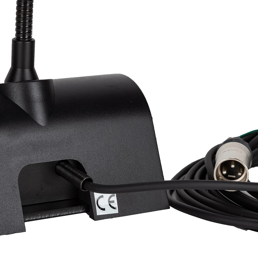 Корпус выполнен из надежного пластика, а держатель типа «гусиная шея» обеспечивает удобное позиционирование микрофона. Микрофон оборудован качественным капсюлем с кардиоидной диаграммой направленности. Благодаря этому он отлично подходит для тех ситуаций, когда необходимо избежать появления сторонних шумов или же увеличить расстояние до говорящего.