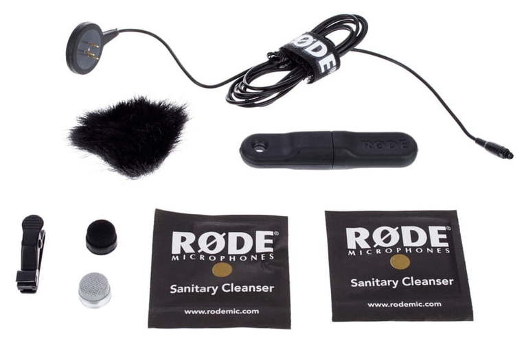 В комплект входит сам микрофон, сменные, черная и телесного цвета, сетки, влагостойкий поп-фильтр с мини-опушкой, для использования в неблагоприятных условиях и кабели.