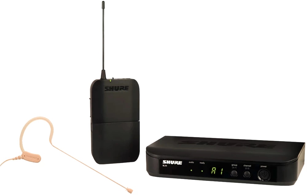 В систему входят: компактный одноканальный приемник BLX4, компактный поясной передатчик BLX1 и миниатюрный всенаправленный микрофон с заушным креплением MX153. В комплекте поставляется блок питания, две батареи АА, клипса для крепления микрофона на одежде, ветрозащита и чехол на молнии для хранения и переноски.
