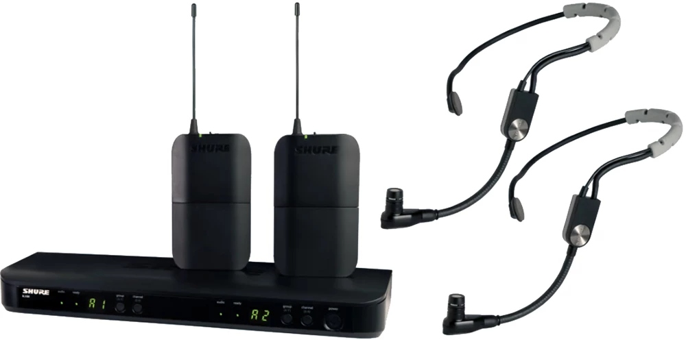 BLX188E/SM35 M17 - двухканальная радиосистема с парой поясных передатчиков и двумя головными микрофонами от компании Shure.
