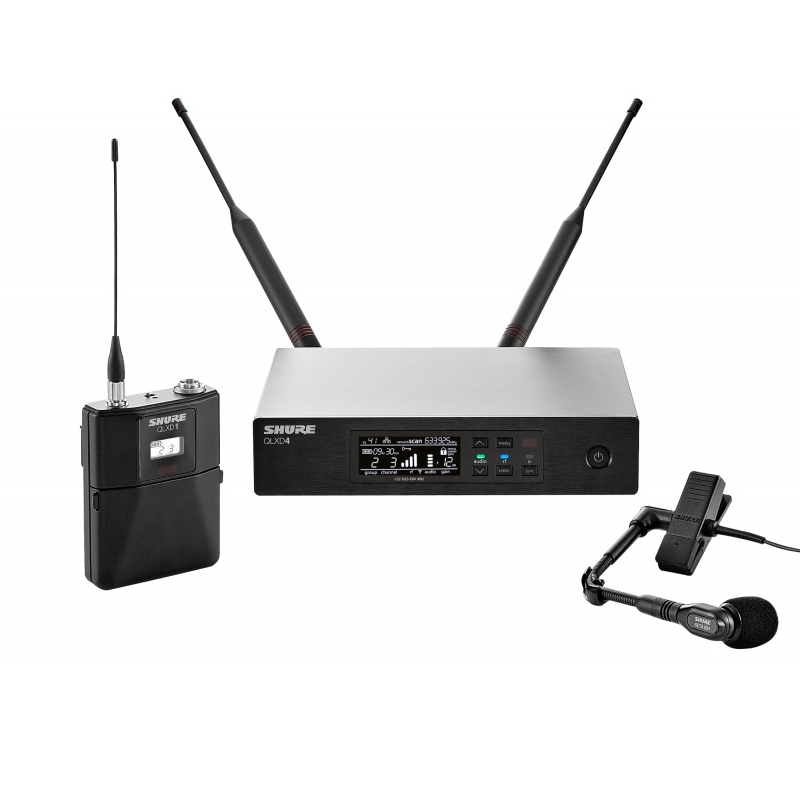 Shure QLXD14E/98H G51 — радиосистема, состоящая из ресивера QLXD4, поясного передатчика QLXD1 и инструментального микрофона WB98H/C, работающая в диапазоне 470 – 534 МГц.