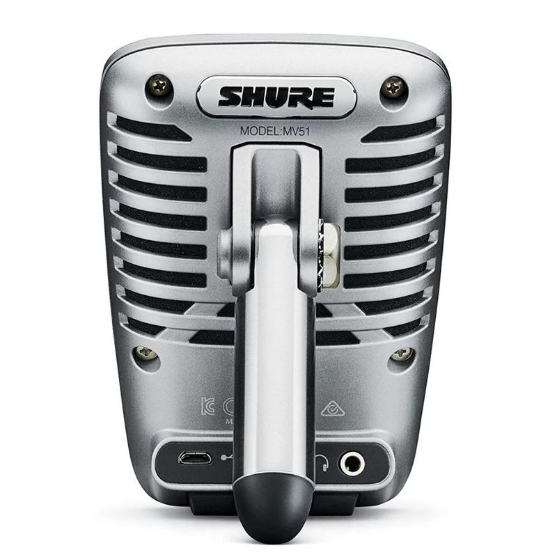 Shure Motiv MV51 - цифровой конденсаторный микрофон с большой диафрагмой, который позволяет записывать аудио на PC/Mac и портативные устройства на базе iOS/Android в любом месте, где бы вы не находились.
