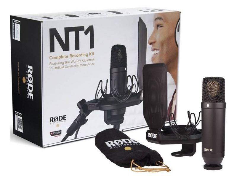 Rode NT1-Kit - набор, включающий в себя микрофон Rode NT1, держатель SMR shock mount с цельнометаллическим поп-фильтром, а также сумку для хранения и транспортировки микрофона.