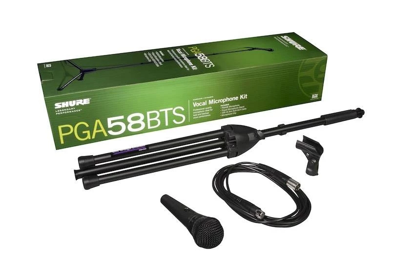 PGA58BTS оснащен кнопкой включения/выключения, а в комплекте с ним идет XLR кабель, микрофонная стойка и держатель для микрофона.