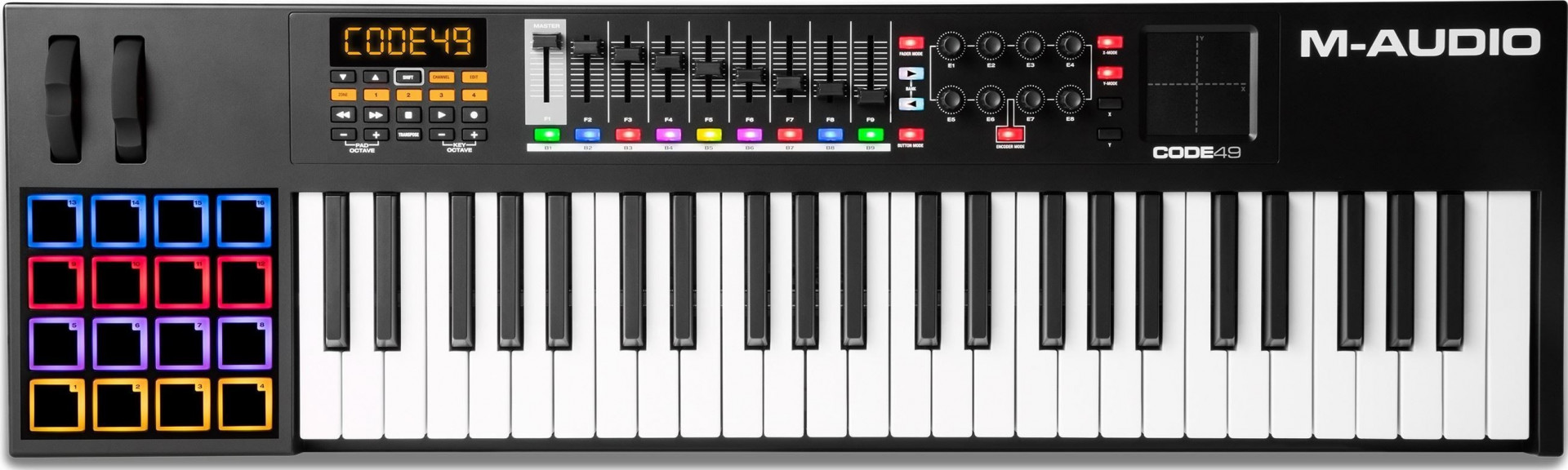 M-Audio Code 49 Black – профессиональная Midi-клавиатура, оснащенная всем необходимым для музыкантов и композиторов. Она выполнена в прочном черном корпусе, сочетающимся с множеством ярких кнопок и индикаторов, что придает клавиатуре стильный и неповторимый внешний вид.