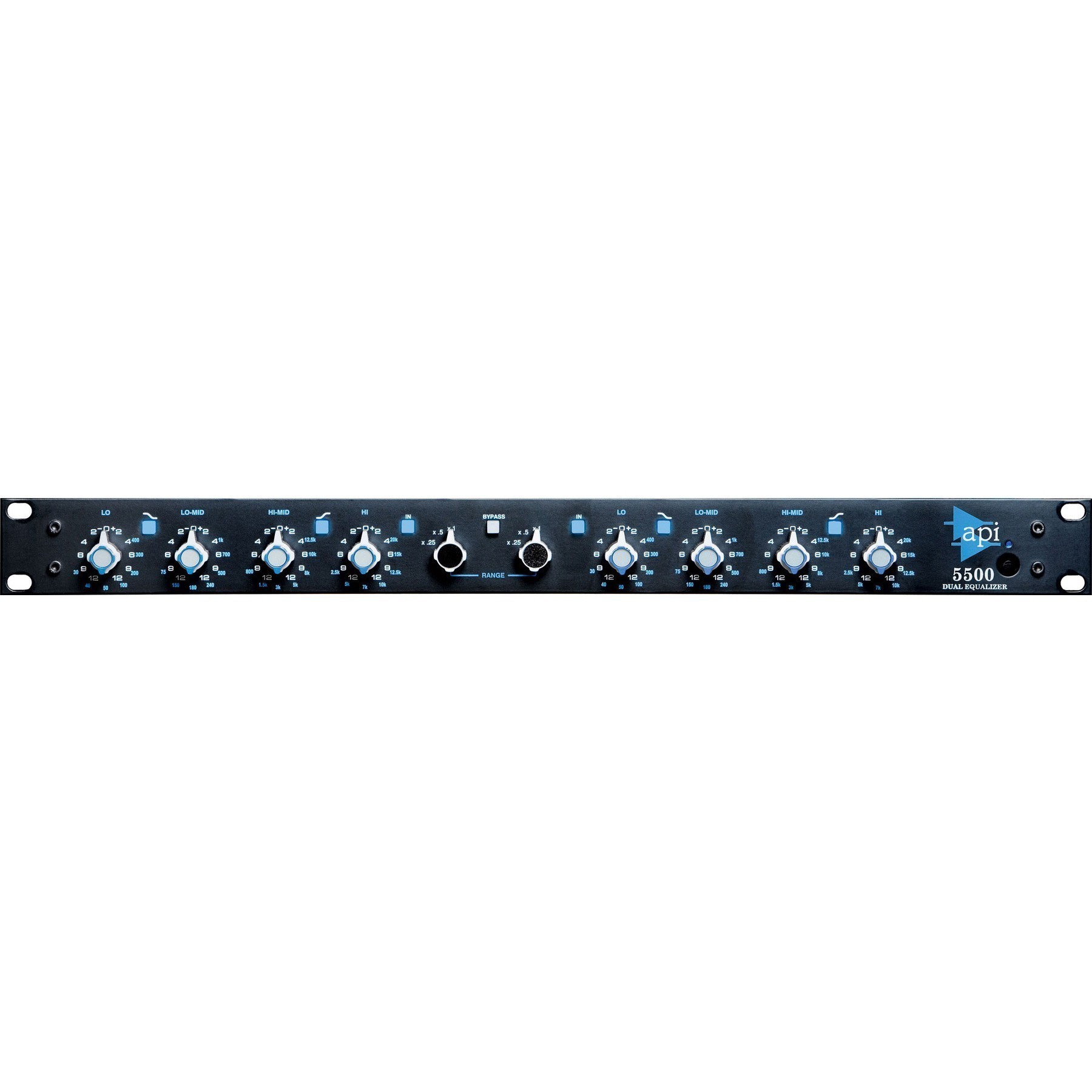 APi Audio 5500 — двухканальный эквалайзер в корпусе с возможностью монтажа в стойку. Схема APi Audio 5500 основана на оригинальном эквалайзере APi Audio 550. Устройство оснащено симметричным входом, имеет фиксированный проводной обход, встроенный блок питания и регулятор диапазона. APi Audio 5500 не имеет микросхем в тракте сигнала. В каждом из двух каналов использованы операционные усилители 2520. В сочетании с выходным трансформатором APi Audio 2503 они обеспечивают уровень сигнала +30 дБ до одностороннего ограничения сигнала.
