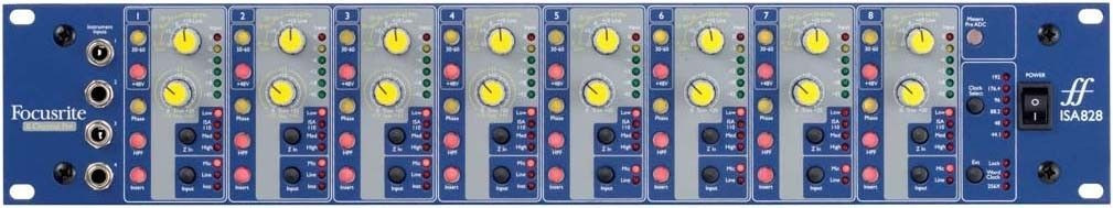 Focusrite ISA 828 микрофонный предусилитель, идентичный модели Focusrite ISA 428, но имеет, уже 8 каналов. Оснащен переменными параметрами сопротивления, 8 линейных и 4 инструментальных входа с высоким и низким вариантом сопротивления.