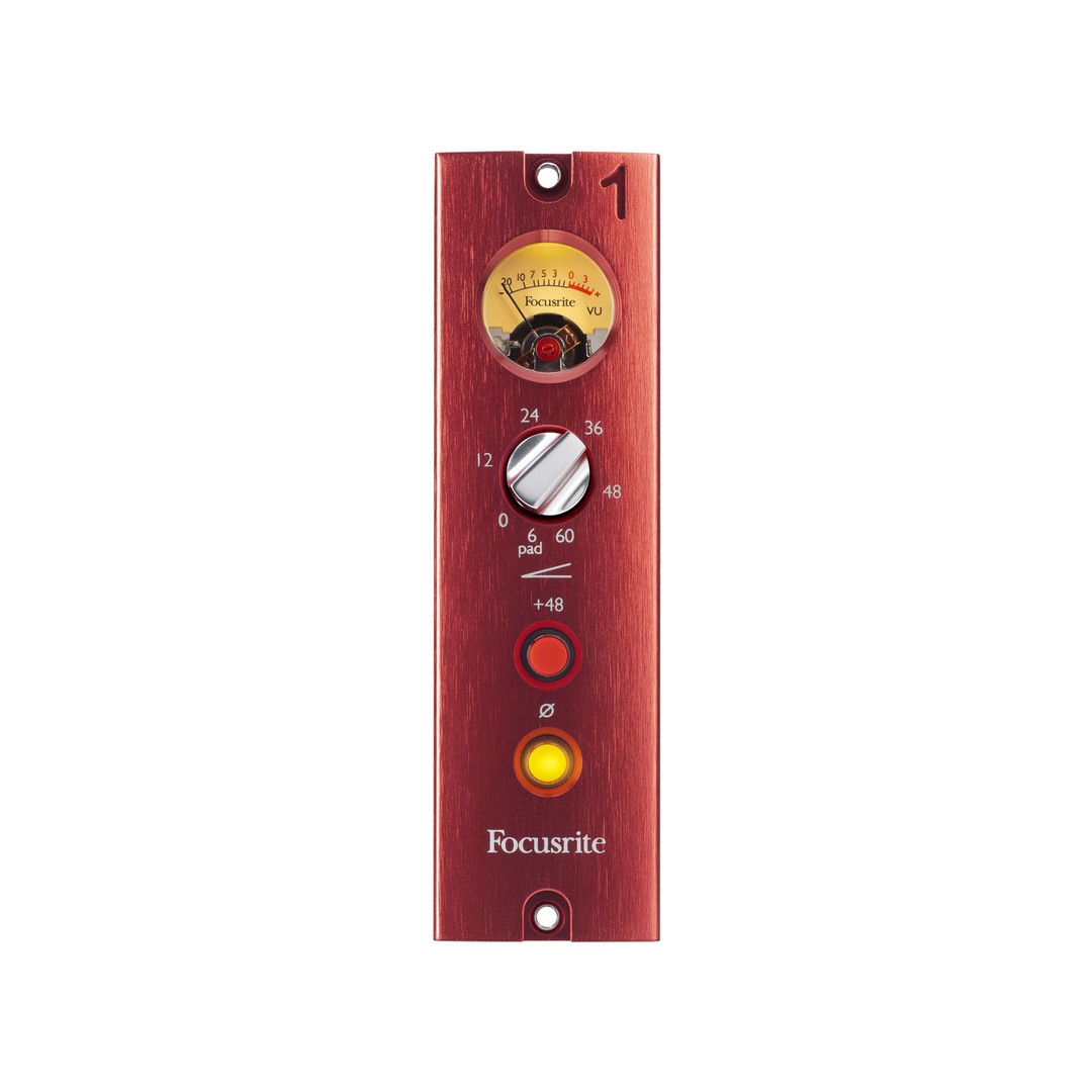 Микрофонный предусилитель Focusrite Red1 500 Series предлагает те же характеристики, что и оригинальный Red, однако предназначен для размещения в модуле "Lunchbox" серии 500. Устройство оснащено входным трансформатором Lundahl LL1538, имеет переключаемое фантомное питание, инверсию полярности и классический VU иизмеритель с подсветкой.