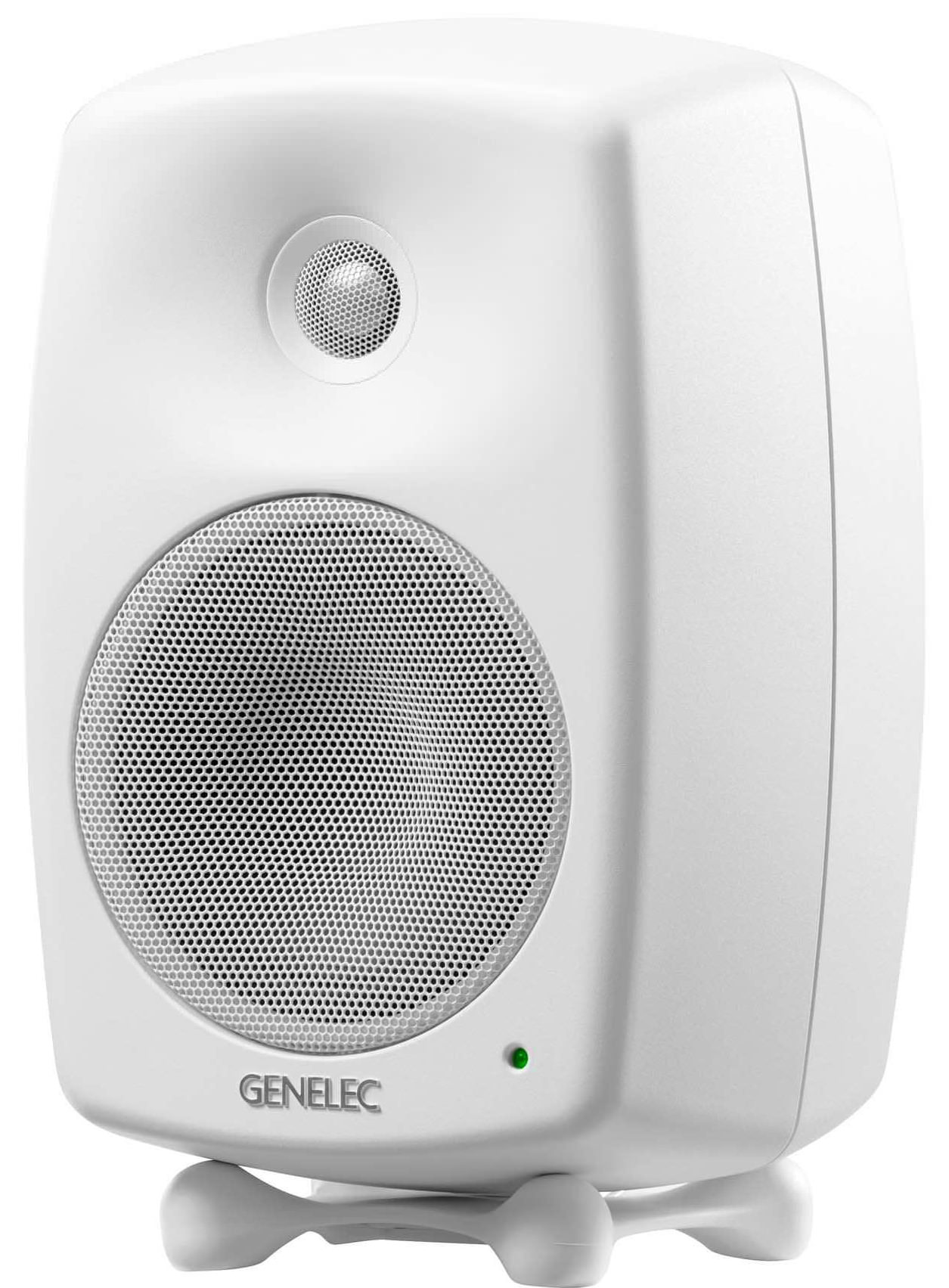 Genelec 8030CW – 2-полосный активный студийный монитор с 5-дюймовым вуфером, 0,75-дюймовым твитером, би-амп усилителем мощности класса D, частотным диапазоном 54 Гц – 20 кГц белого цвета.