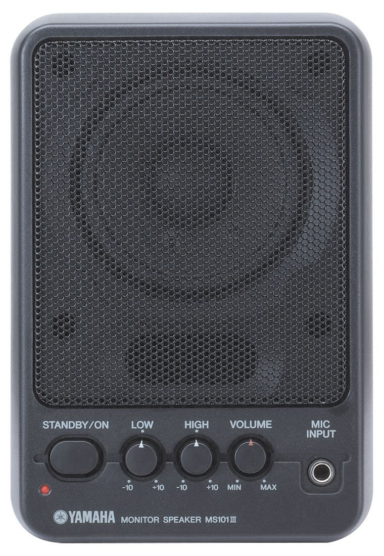 YAMAHA MS101III - представляет собой портативный монитор, рассчитанный преимущественно для мультимедийной работы. Данная модель прекрасно подходит для малых и средних студий звукозаписи, различных медиа-продакшн студий, радиовещательных станций, озвучивания видеороликов и так далее. Помимо этого, ее вполне можно использовать в качестве домашней аудиосистемы для прослушивания музыки в хорошем качестве. Эта мобильная система имеет весьма скромные габариты, но при этом обладает достаточной мощностью. Благодаря этому, ее вполне можно возить с собой во время концертных туров.