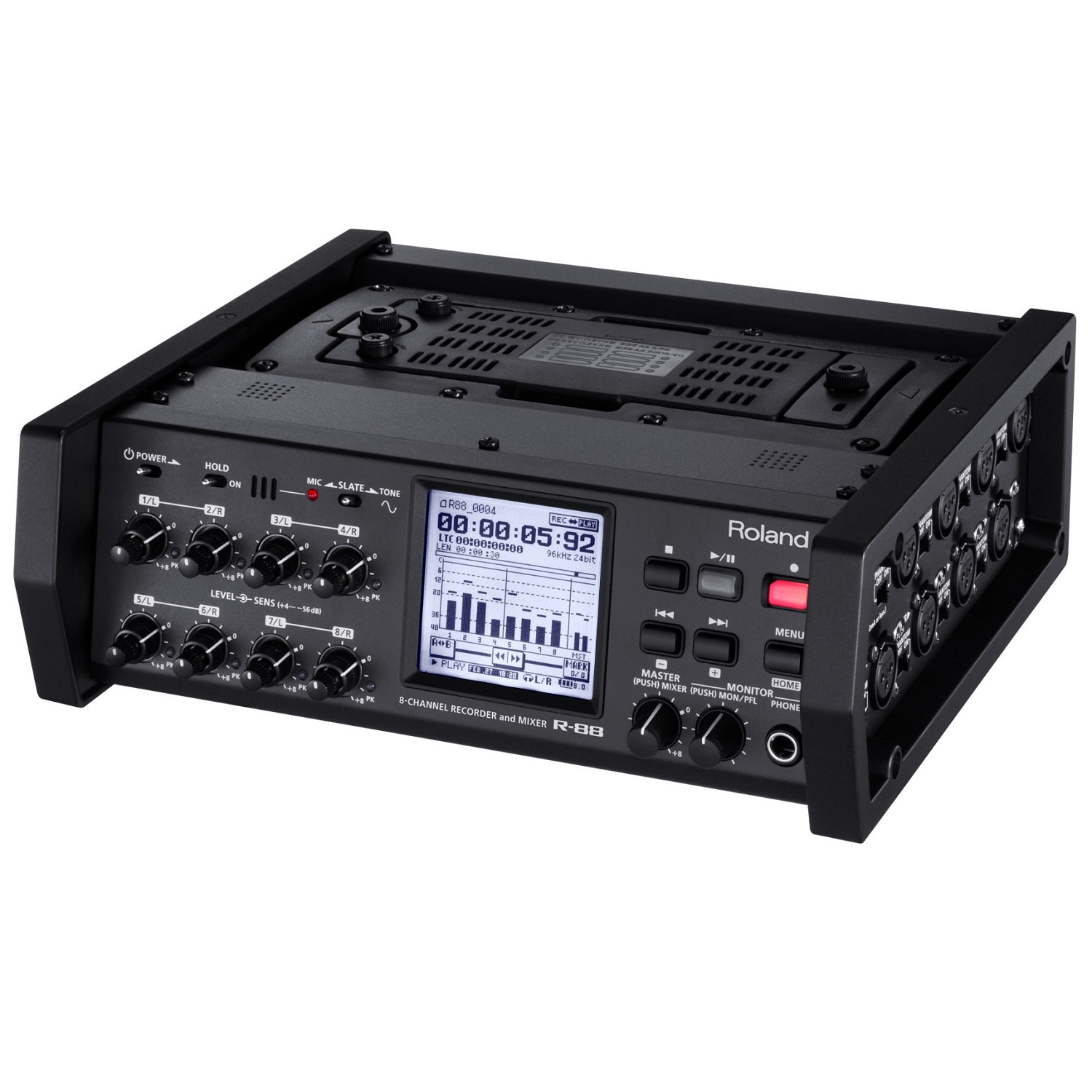 R-88 – флагманский портативный рекордер от компании Roland, который также совмещает в себе функции микшера и многоканального аудиоинтерфейса, за счет чего идеально подходит для записи живых концертов, видеосъемок и других мероприятий.