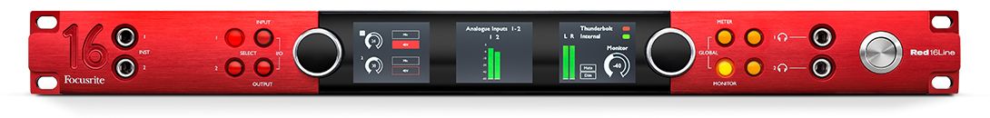 Focusrite Red 16Line – 16-канальный аудиоинтерфейс для шины Thumderbolt 3 и систем Pro Tools HD, обладающий качественные конвертерами с широким динамическим диапазоном, микрофонными преампами Red Evolution и ультранизкой задержкой.