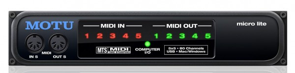 MOTU Micro Lite - 5х5 USB MIDI-интерфейс, совместимый с Macintosh и Windows.