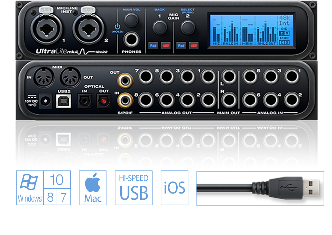 MOTU UltraLite-mk4 - профессиональный аудио USB-интерфейс на 18 входов/22 выхода.