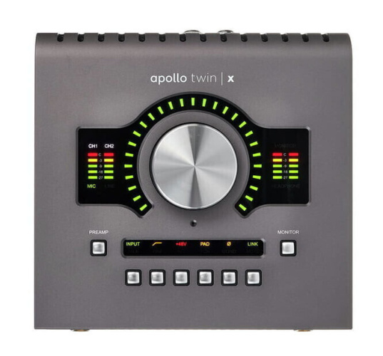 Universal Audio Apollo Twin X QUAD Heritage Edition — звуковая карта для подключения к порту Thunderbolt 3 c 4-ядерным процессором UAD QUAD Core, 2 входами с предусилителями, 1 входом Hi-Z, 4 линейными выходами.