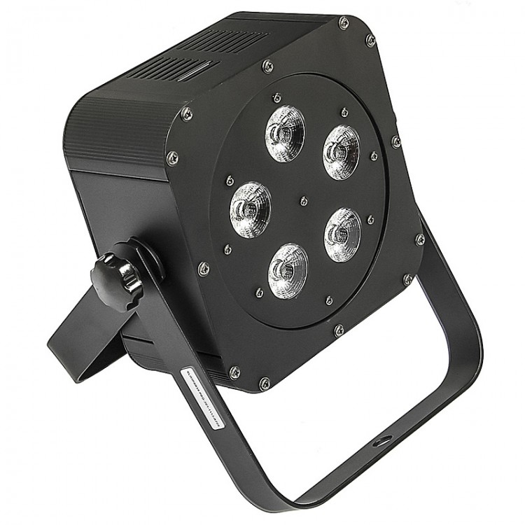 5 светодиодов RGBWA+UV Мощность одного светодиода: 10 Вт Угол раскрытия луча: 40 градусов 5, 7, 8 и 9 DMX-каналов Электронный диммер 0 – 100 % Звуковая активация Автоматический режим Режим мастер/слейв Светодиодный дисплей Освещенность: 5550 люкс Активное охлаждение
