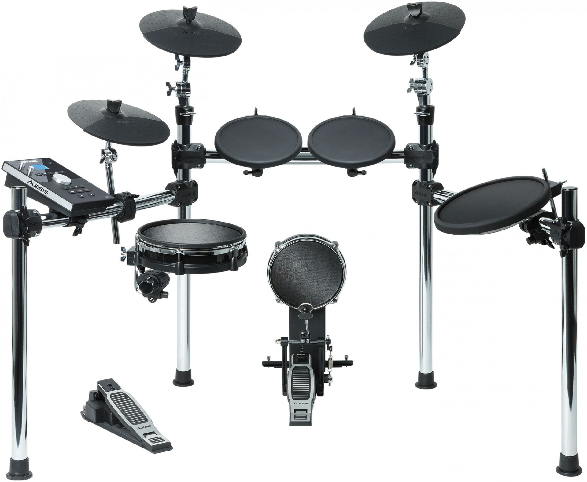 Alesis Forge Kit - электронная ударная установка компактного размера, оснащенная прочной хромированной рамой, прорезиненными пэдами с естественным отскоком и обновленным модулем. Данная модель отличается низким уровнем шума и широким разнообразием тембров. Установка обладает следующим набором пэдов и тарелок:
