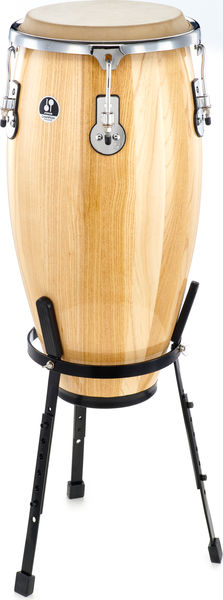 Корпус инструмента изготовлен из бразильской гевеи, а мембрана – из натуральной кожи буйвола, что делает звучание теплым и натуральным. Инструмент оборудован закругленным ободом, который обеспечивает оптимальный комфорт даже при игре с большой силой. В комплекте с конгой идет надежная стойка черного цвета с возможностью регулировки высоты. Вся фурнитура выполнена с хромовой отделкой, а корпус окрашен в натуральный цвет с глянцевой отделкой.