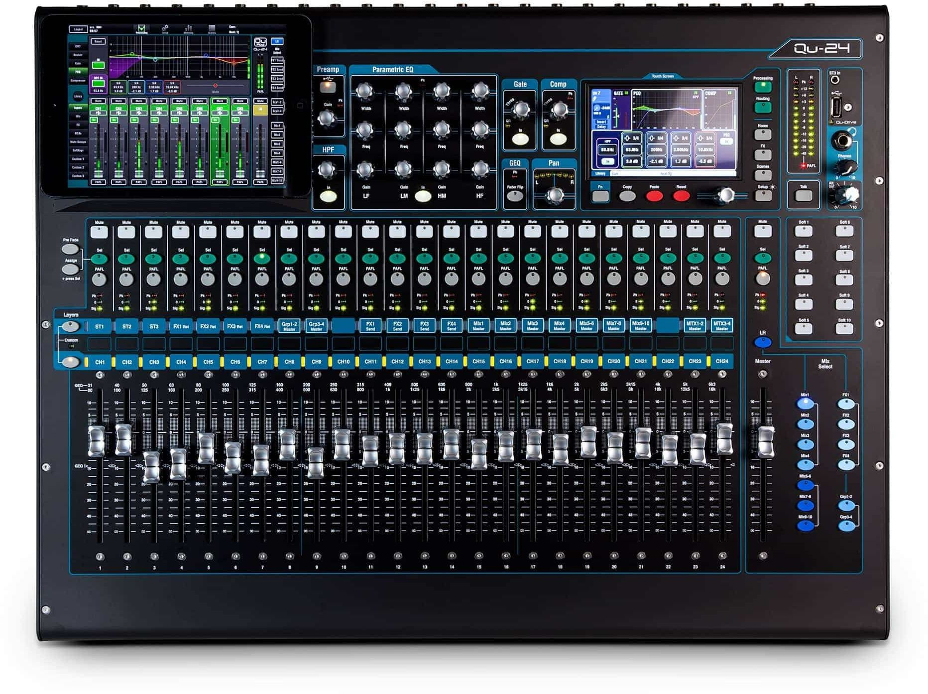 ALLEN HEATH QU-24C - Цифровой микшер 24 микрофонных/линейных входа Компания Allen Heath представила новый компактный цифровой микшер Qu-24 (30 входов, 24 выхода), который продолжает серию Qu,уже включающую в себя ранее выпущенную модель Qu-16. Qu-24 позволяет сохранять и вызывать любые настройки (включая положение 25 моторизованных фейдеров и параметры цифровых предусилителей), имеет сенсорный дисплей с интуитивно понятным меню, встроенный многоканальный рекордер Qu-Drive, дает возможность подключать по интерфейсу dSNAKE модули с удаленными входами/выходами и системы персонального мониторинга, выполнять потоковую передачу многоканального аудио по USB на компьютеры Mac и осуществлять управление с iPad при помощи приложения Qu-Pad, а также оснащен встроенными процессорами эффектов с большой библиотекой пресетов - такими же, как в системе iLive. Qu-24 имеет отдельные фейдеры для каждого канала, 24 микрофонных/линейных входа, 3 стерео входа, 4 процессора эффектов с отдельными посылами и стереовозв